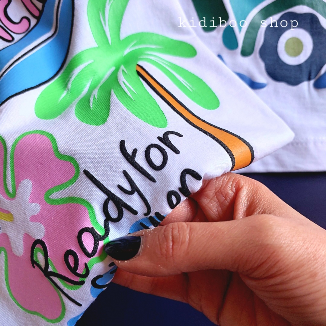 تیشرت نخ پنبه طرح ماشین و ساحل